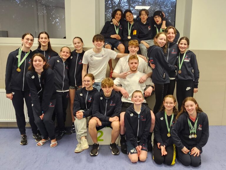 Belle récolte pour nos nageuses et nos nageurs ce weekend du 15 et 16 février 2025 à Charleroi. 3 médailles d’Or, 9 médailles d’Argent et